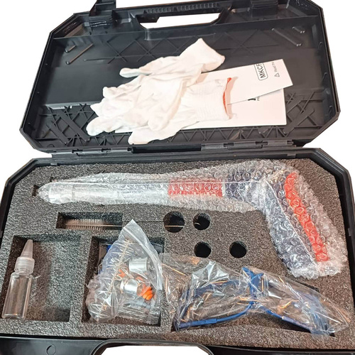 xامکان استفاده در بتن، پلاستیک، ورق های نازک فلزی، چوب و ... را دارد xقابلیت استفاده میخ تا 5 سانتیمتر را دارد xکارکرد ساده و قوی دارد xبدون نیاز به چاشنی انفجاری می باشد xبسیار سبک، کم حجم وقابل حمل می باشد xمحصولی جدید و با تکنولوژی به روز جهت جایگزینی برای میخکوب های والتی، کامرکس و ... می باشد xبدون نیاز به چاشنی انفجاری می باشد xدارای کیف حمل، عینک، دستکش، فرچه، فنر یدک می باشد تفنک میخکوب ابزاری است مشابه تفنگ بادی است. تفنگ میخکوب بتن برای اتصال پلیت ها و صفحات مختلف به بتن می باشد. البته مصارف دیگری از جمله اتصال انواع توری های مشبک و غیره به صفحه های بتنی و مصالح ساختمانی را نیز دارد. این تفنگ ها به وسیله چاشنی میخ موجود در خان تفنگ را با شدت به سمت هدف شلیک کرده و واشری که بر روی میخ قرار دارد صفحه را بر روی بتن نگه می دارد. با قرار دادن چاشنی مخصوص در داخل دستگاه و قرار دادن میخ در محل تعیینشده، میتوانید از این ابزار استفاده کنید. چاشنیهایی که برای این محصول در نظر گرفتهاند در دو نوع و برای کوبیدن میخ در فلز یا بتن هستند. نوع میخی که برای این دستگاه مورد استفاده قرار میگیرد، از گونههای واشردار است. از این دستگاه در شغلهای مختلف که با چوب و فلز سروکار دارند، استفاده میکنند.